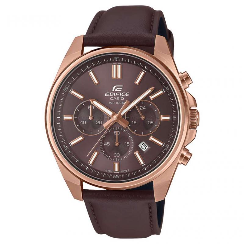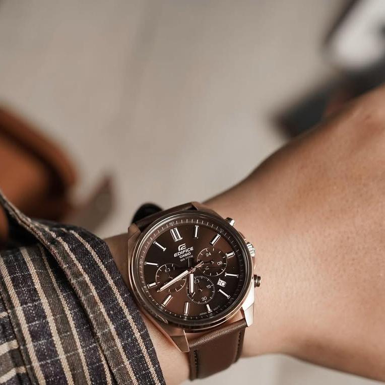 Tampil menawan dengan kronograf EDIFICE klasik berukuran sedang.Perpaduan modern antara detail dan desain halus ini memiliki offset bezel tipis dengan pelat lebar untuk gaya yang elegan dan menawan.