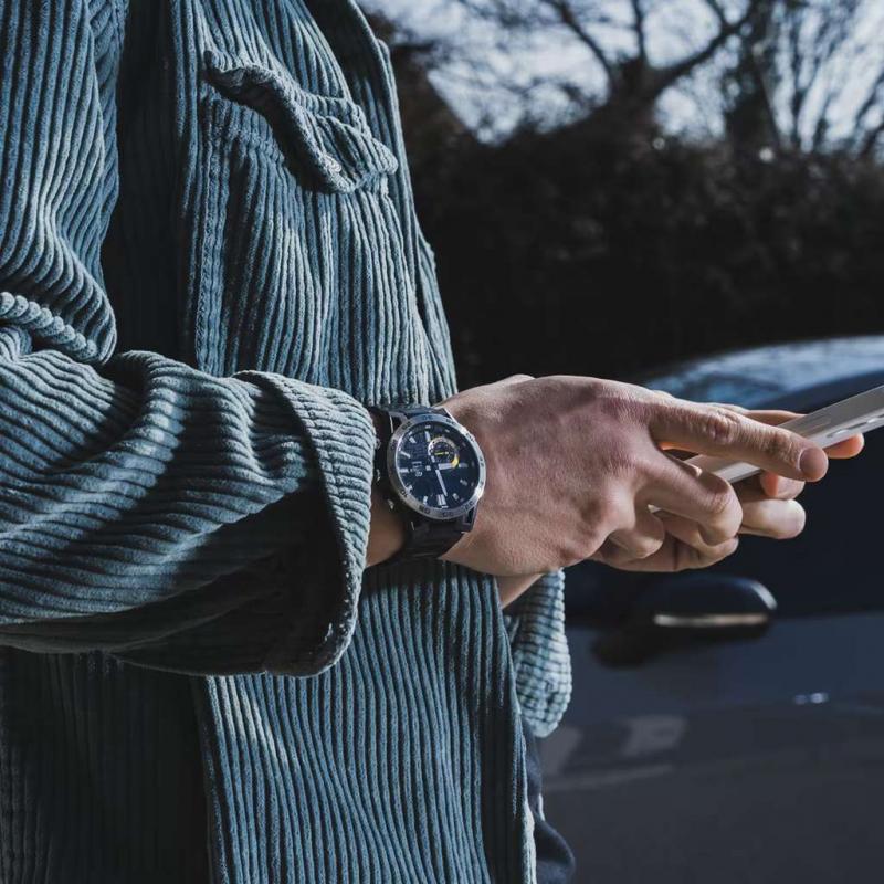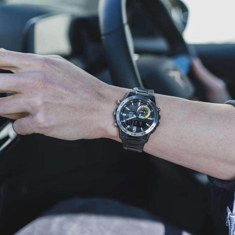 Casing karbon dengan desain lengan suspensi, dilengkapi Smartphone Link. Jam tangan kombinasi analog-digital dengan fungsi Smartphone Link ini memiliki casing resin yang diperkuat serat karbon dengan desain lengan suspensi yang terinspirasi dari konsep "motorsport sungguhan". Dilengkapi dengan sentuhan desain dan teknologi untuk mendukung penggunaan di arena balap sungguhan dan menambah gaya hidup para penggemar motorsport.